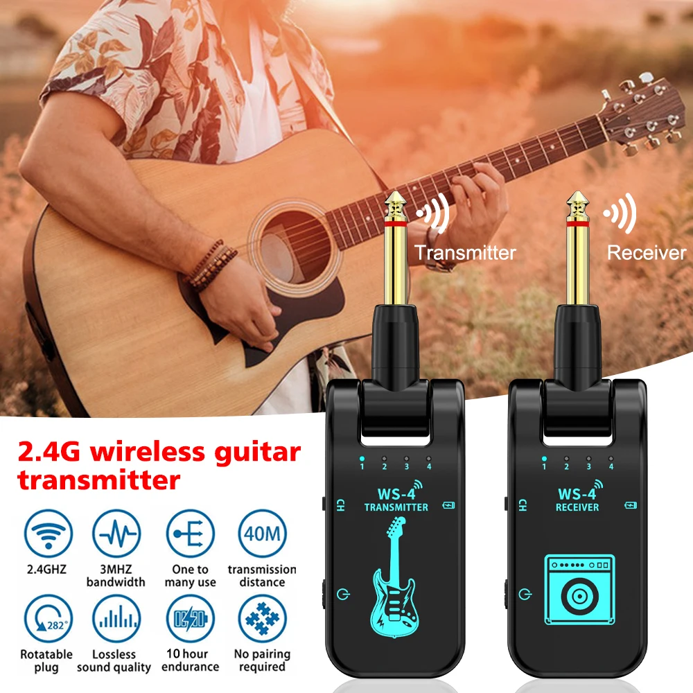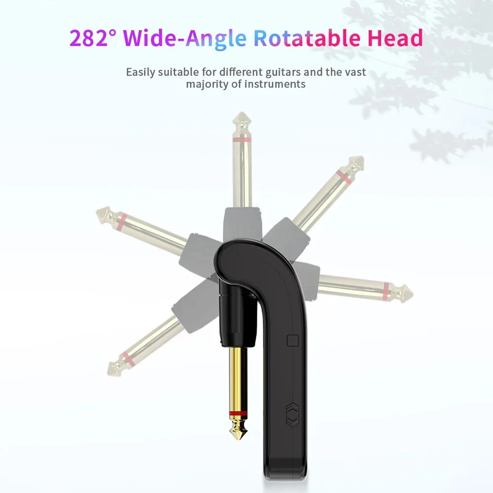 [Flexible and convenient]: The system has a 282° rotating head and is easy to use with different guitars and various instruments. It does not require pairing, just switch to the same channel on the transmitter and receiver.